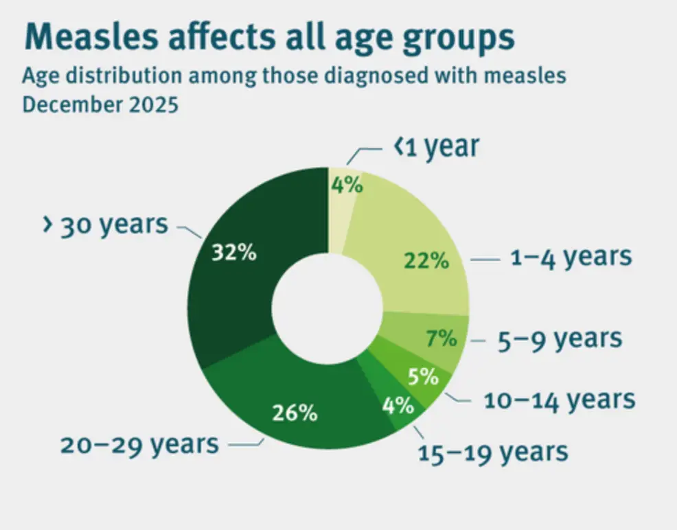 In vista del picco che si manifesta tra fine inverno e inizio primavera, sarebbe utile controllare il proprio stato vaccinale, in quanto il morbillo rappresenta una minaccia ancora attiva in Europa. Nel 2025 i casi diagnosticati sono stati 7.655, in forte diminuzione rispetto al 2024 (oltre 35.000), ma quasi il doppio rispetto al 2023. Nell’80% dei casi si è trattato di soggetti non vaccinati, e tra i minori di 5 anni sono stati 3.072. Senza il raggiungimento del 95% di copertura con due dosi di vaccino, l’eliminazione del morbillo resta comunque fuori portata.